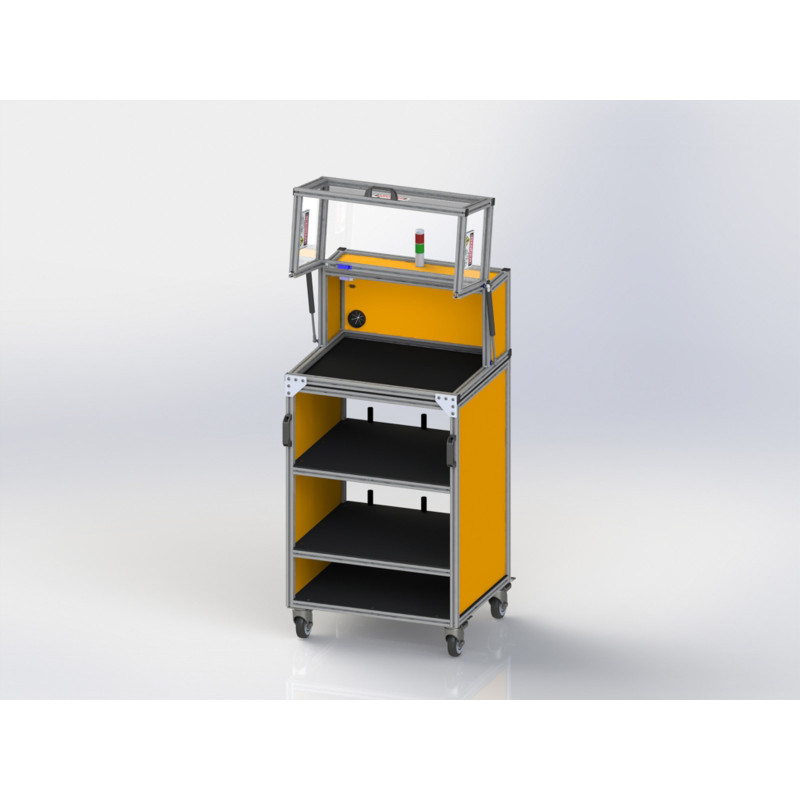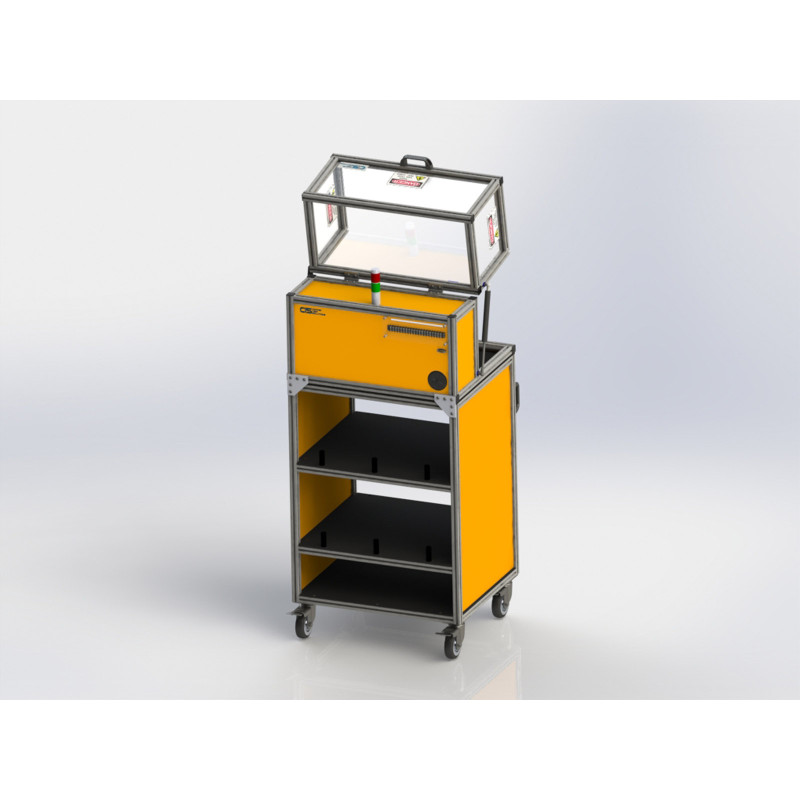 Cortek SE-2420CT sikkerhetskabinett er en pålitelig løsning for trygg og presis elektrisk testing av elektronisk utstyr i utvikling eller produksjon. Dette er et av de mellomstore standard kabinettene integrert på tralle med 2 hyller. Innvendige mål for testområde: H 280 mm, D 432 mm, B 533 mm og vekt med tralle 32,2 kg
