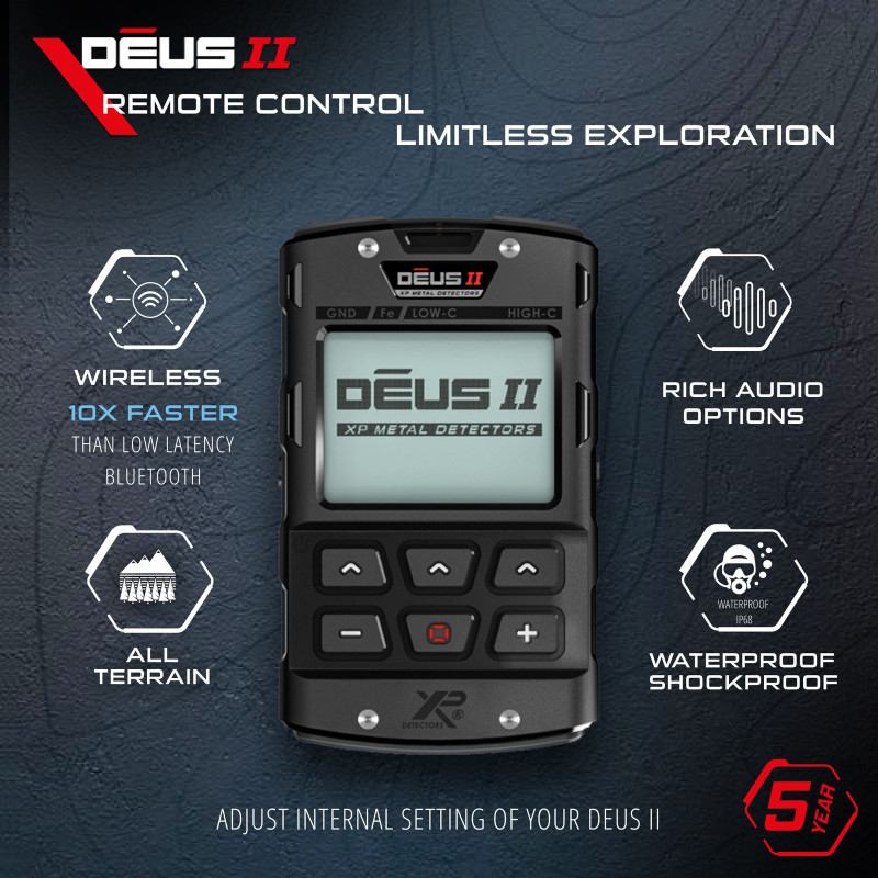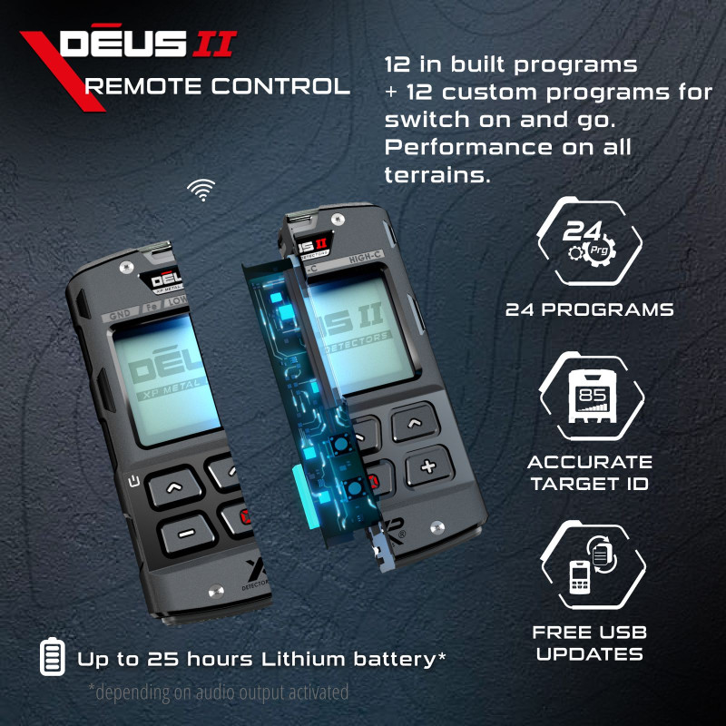 Fjernkontrollen anbefales for de som ønsker å benytte seg av alle mulighetene og innstillingene som DEUS II kan tilby som definering av nye søkeprogrammer og dykking under vann.