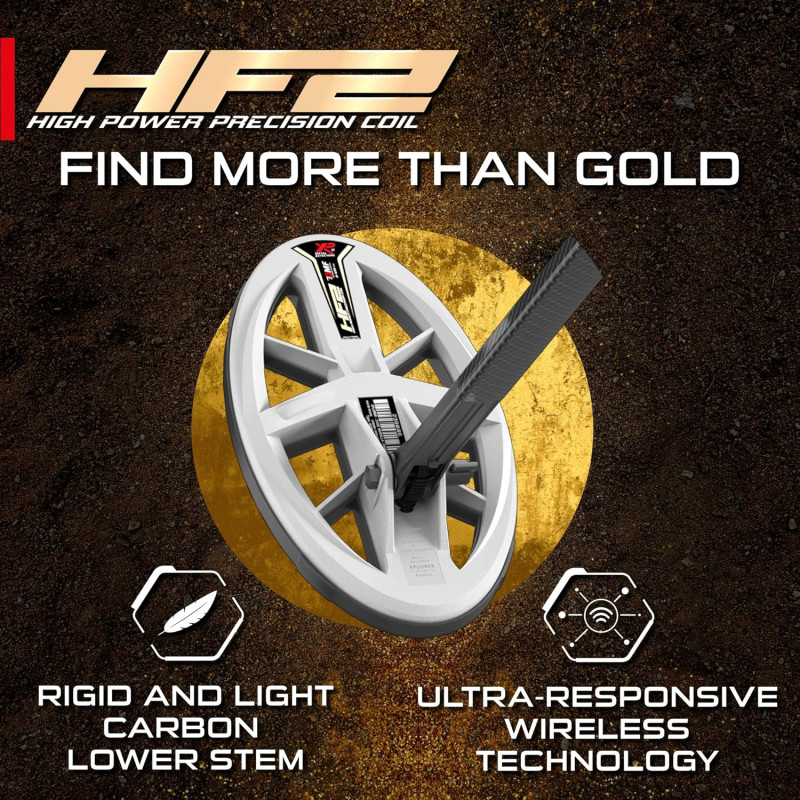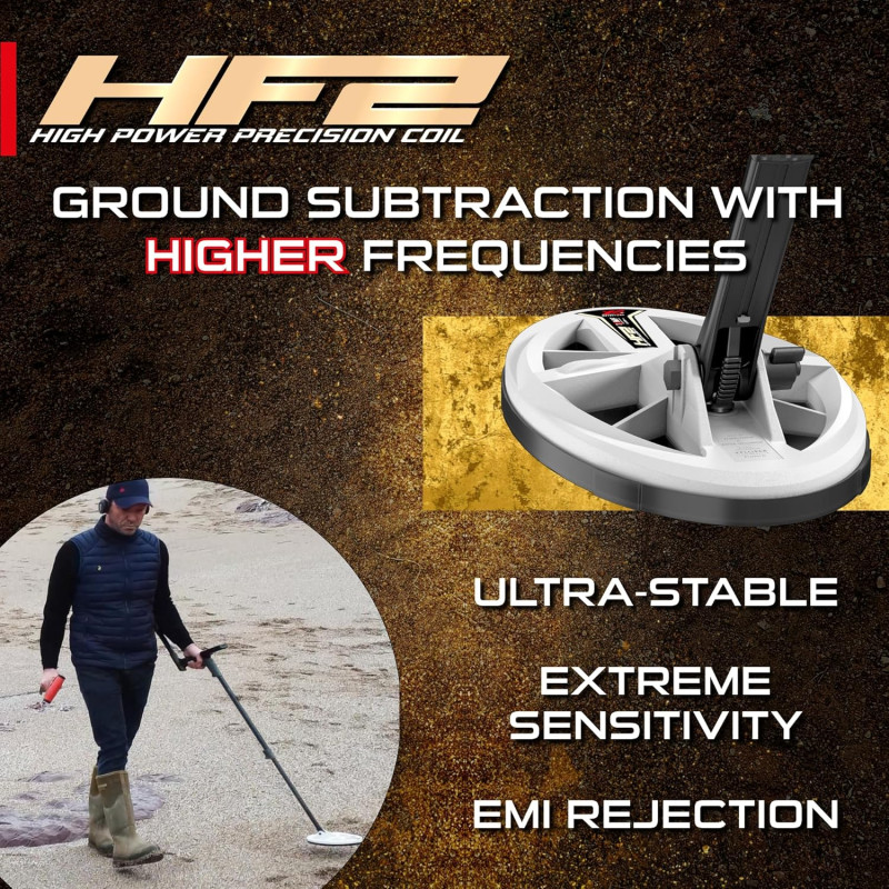 HF2 fungerer også meget godt for søk etter mynter, smykker og samleobjekter i FMF modus. Den elliptiske utformingen, kombinert med FMF multifrekvens, gir en enestående balanse mellom signalseparasjon og dybderekkevidde som må oppleves. Dette er det ultimate søkehodet for å plukke ut godsaker på områder med mye jern eller vanskelige mineralforhold der andre sliter. Test det på dine “gjennomsøkte” favorittområder og du vil bli overrasket over hvor mye mer du finner!